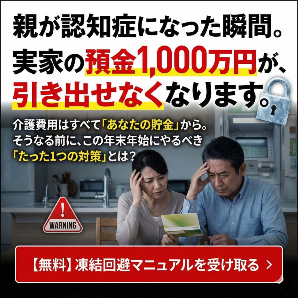 親が認知症になった瞬間、 実家の預金1,000万円が「引き出せなく」なります。